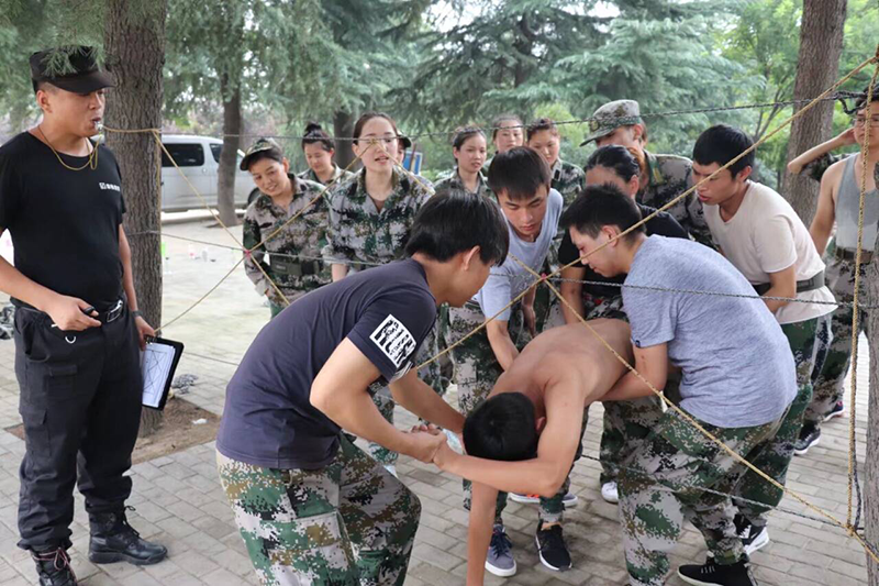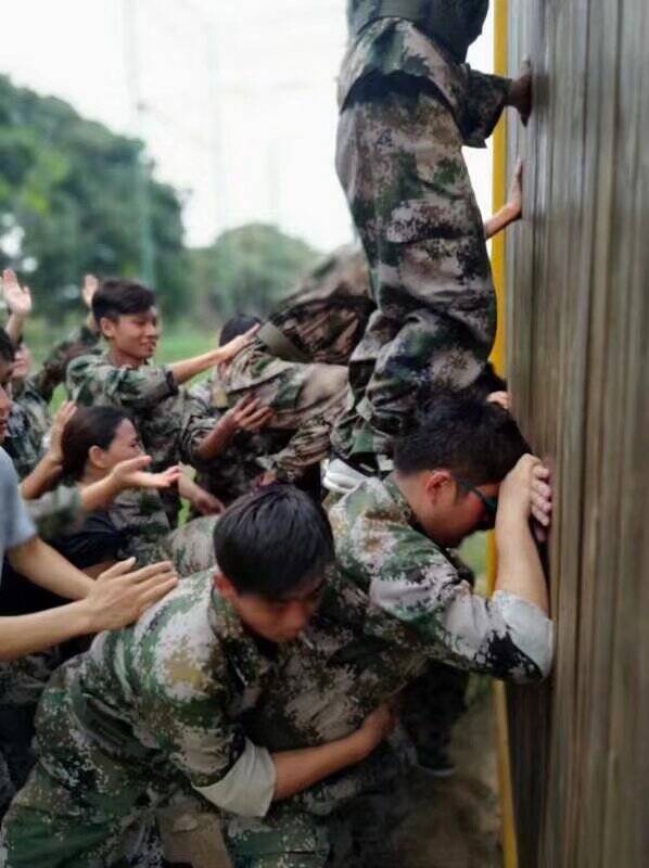 2.其实在这个项目未进行前,教练说三十分钟没完成这项任务,就把我们的旗子撕成几十块,一人一块什么的,其实我们也怕的,那时候我的第一反应就是,一定要成功,咱们的旗帜绝对不能被撕,我们必须要做到,所有人貌似跟我想的是一样的,就冲着这个统一的目标,我们成功挑战了这个项目的,也成功的挑战了自己,我们证明了凝聚力的力量,也证明了没有不可能,只要团结一致,心往一处想,劲往一处使,我们就可以创造奇迹,所有不可能都将成为有可能。
